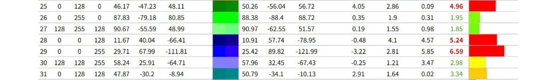但仍有5个边缘分区的对比度偏差高于标准,被标记为刺眼的大红色。