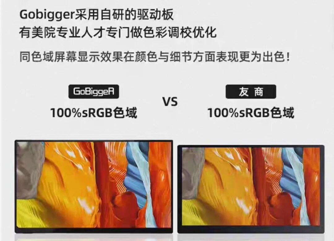 13.3寸16:10面板、2560x1600分辨率,100% sRGB色域、400nit亮度,甚至标配10bit(FRC)色深,便携皮套、一线通功能更是一样不少——廉价便携屏的性价比着实令人震惊。