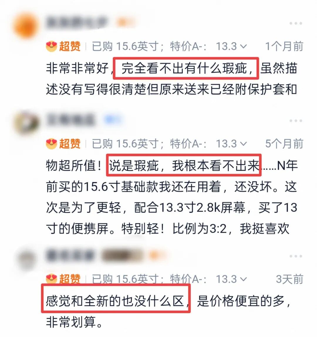 但在另一方面,这些便携显示器的价格又格外诱人;评论区中一条条“瑕疵难辨”的好评,更是让人不由为之驻足。